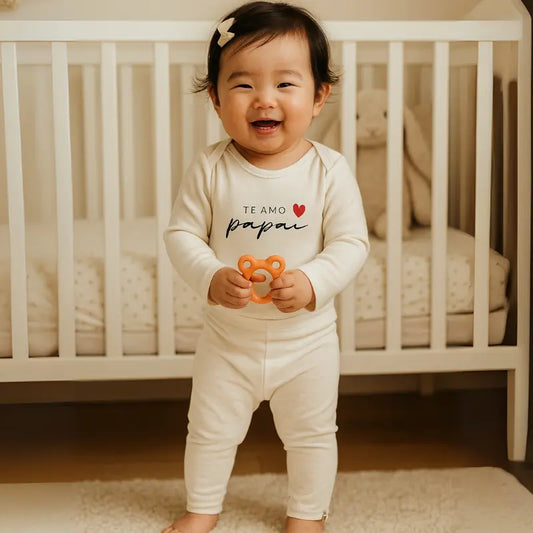 Conjunto Bebê Algodão Organic buttons longo Bege