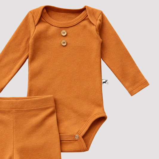 Conjunto Bebê Algodão Organic buttons longo Caramelo