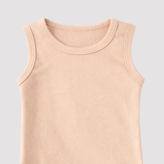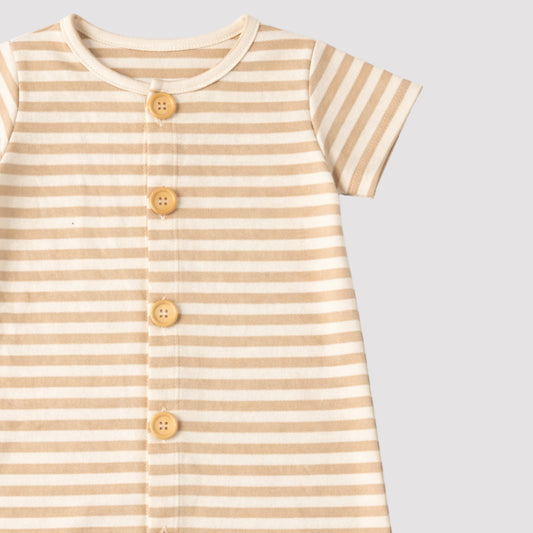 Preço unitário / por•Fibra Natural100% AlgodāoPromoçãoMacacão Bebê Regata Confort Listras Caramelo