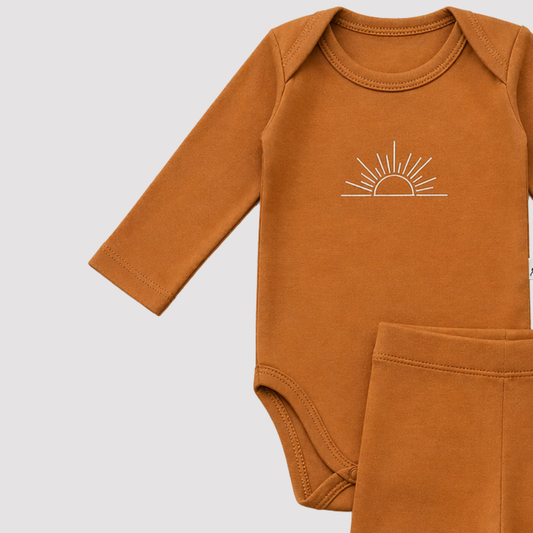 Conjunto Bebê Algodão Organic buttons longo Caramelo