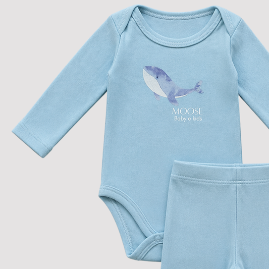 Conjunto Orgânic Algodão Longo Baleia Azul