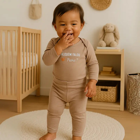 Conjunto Bebê Algodão Organic Longo Caramelo