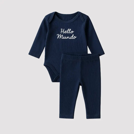Preço unitário porPromoçãoConjunto Bebê Algodão Orgânic Hello Mundo Marinho