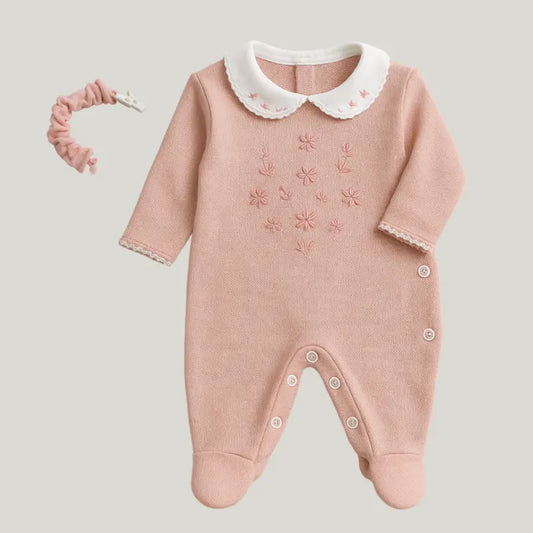 Preço unitário porPromoçãoKit Saída Maternidade Menina Tricot 3 Peças Flora Salmão