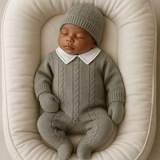 Preço unitário porKit Saída Maternidade Bebê Menino 5 peças Tricot Benjamim Musgo