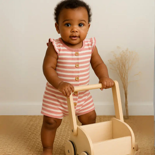 Preço unitário porPromoçãoMacacão Bebê Menina Babado Listras Rose