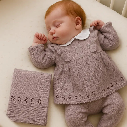 Kit Saída Maternidade Menina Tricot 4 Peças Vintage Loren Lavanda