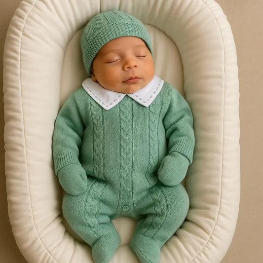 Kit Saída de Maternidade Bebê Menino 5 Peças Tricot Benjamim Verde Menta