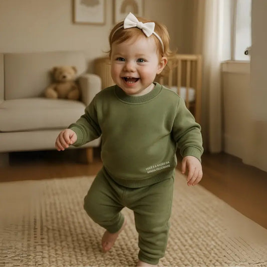 Conjunto Bebê Moletom Comfy Felicidade Verde Musgo