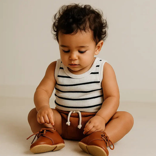 Conjunto Bebê Canelado Algodão Listrado Cinza