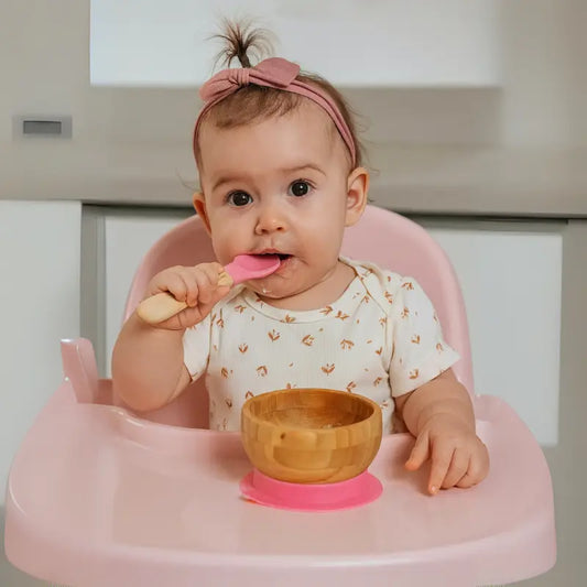 Kit Tgela Bowl Colher Bambu Introdução Alimentar Com Ventosa Rosa
