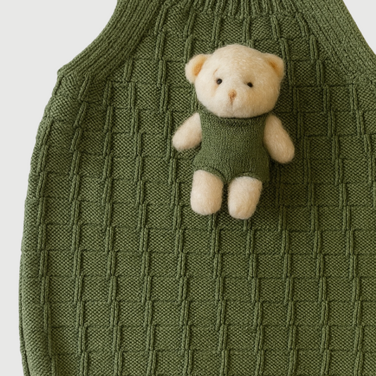 Jardineira Bebê Tricot Ursinho Verde Musgo