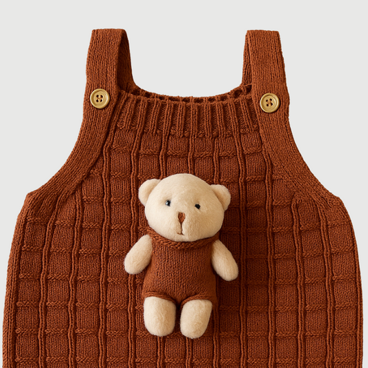 Kit Jardineira + Chapeuzinho Tricot Bear Blue