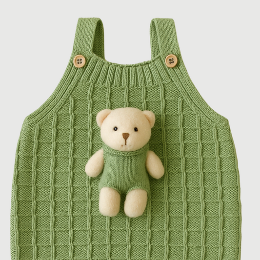 Jardineira Bebê Tricot Ursinho Verde Menta