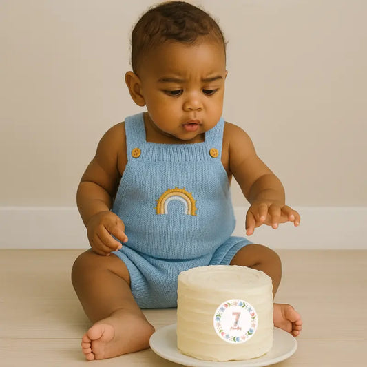 Jardineira Tricot Bebê Rainbow Azul Bebê