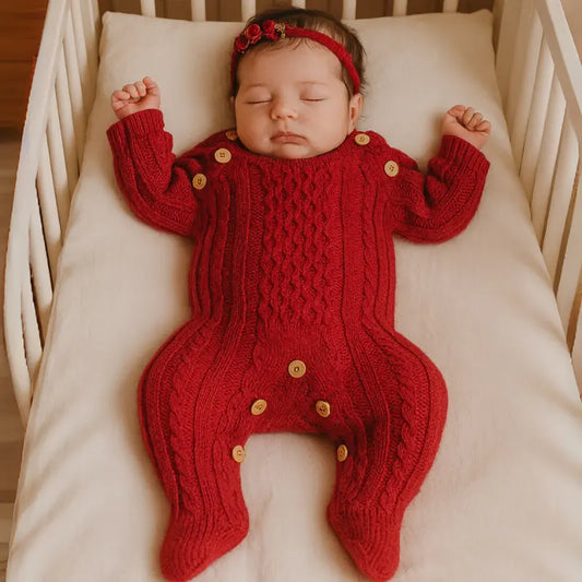 Kit Saída Maternidade Bebê Tricot Trançado Buttons 2 Peças Red