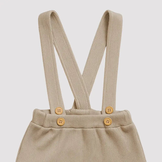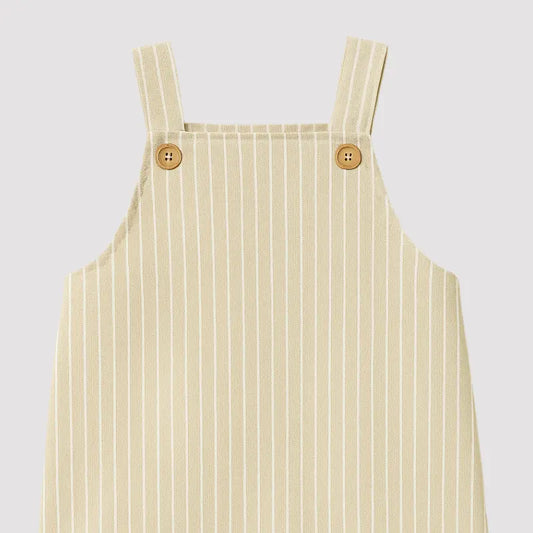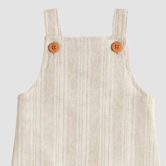 Jardineira Bebê Linho Vintage Listras Bege