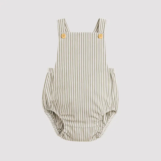 Jardineira Bebê Linho Vintage Listras Verde acizentado