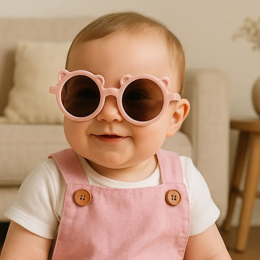 Óculos de Sol para Bebe Retrô Redondo Rosa com Proteção Uv