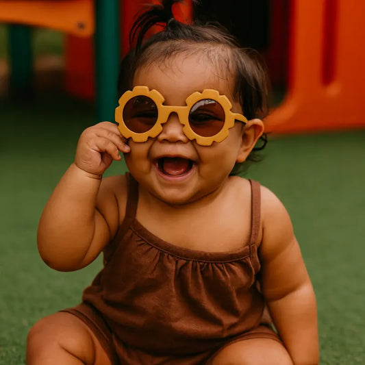 Óculos De Sol Para Bebe Retrô Flowers Mostarda Proteção Uv