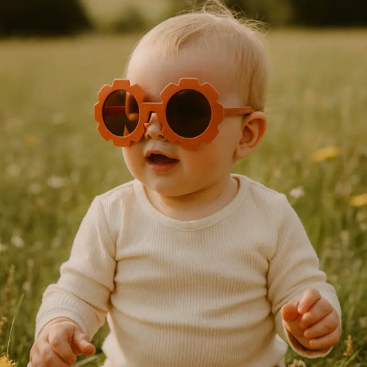 Óculos De Sol Para Bebe Retrô Flowers TerraCota Proteção Uv