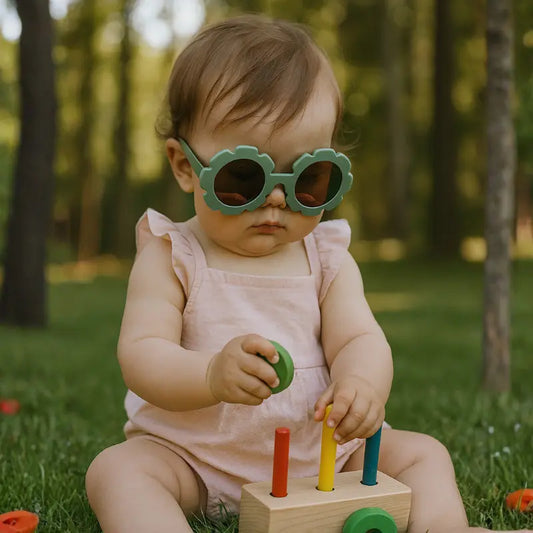 Óculos de Sol para Bebe Retrô Flowers Green com Proteção Uv