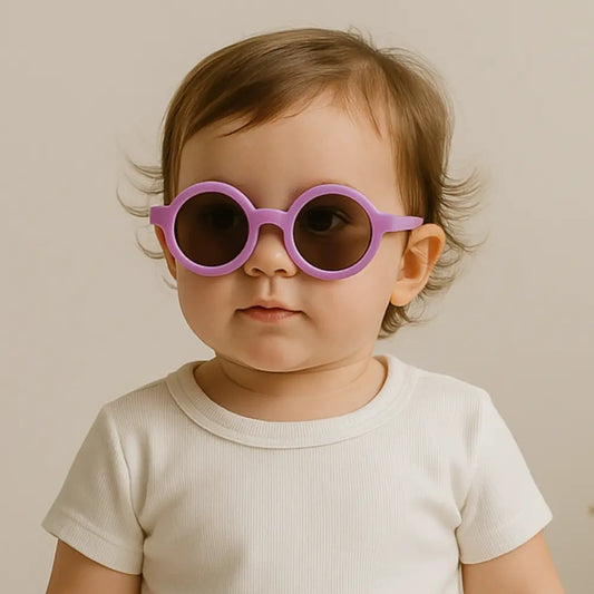 Óculos de Sol para Bebe Retrô Redondo Rosa com Proteção Uv