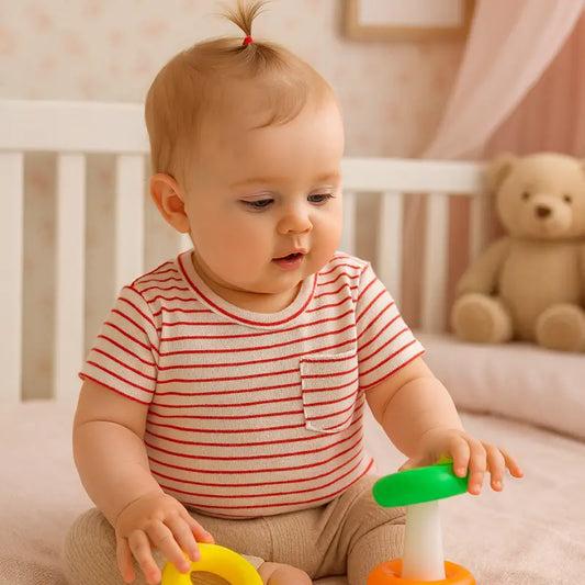 Preço unitário porPromoçãoJardineira Bebê Linho Organic Listrada Bege