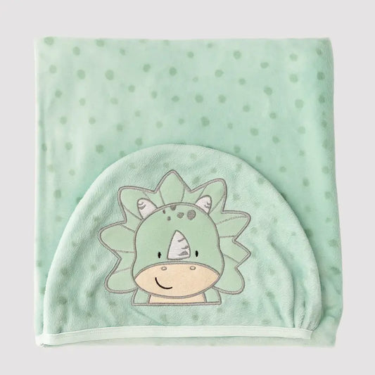Cobertor Bebe Bordado De Microfibra Dino Green