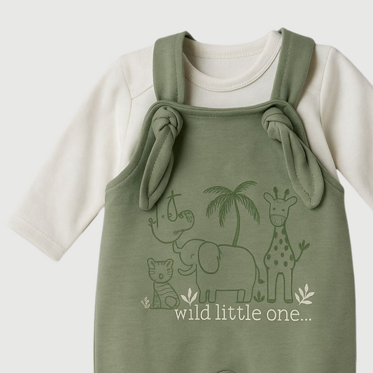 Jardineira Bebê Tricot Ursinho Verde Musgo