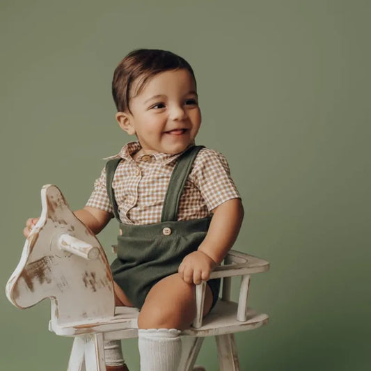 Jardineira Longa Tricot Trança Bebe Unissex Off White