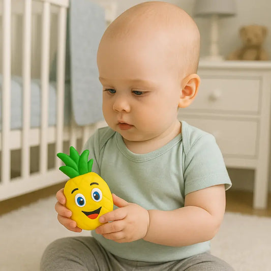 Mordedor Bebê Chocalho Abacaxi Massageador de Gengiva