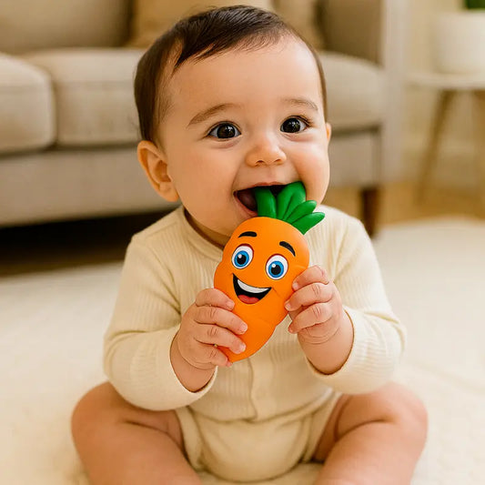 Mordedor Bebê Chocalho Cenourinha Massageador de Gengiva