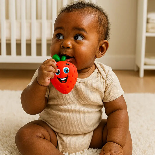Mordedor Bebê Chocalho Moranguinho Massageador de Gengiva