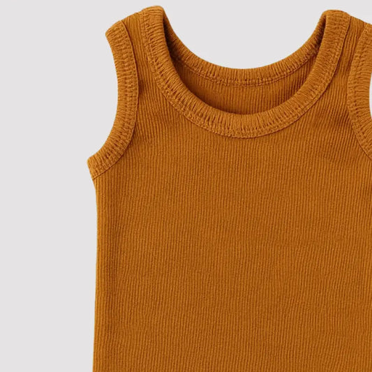 Short Coffe Ribbed Cotton Baby Bodysuit