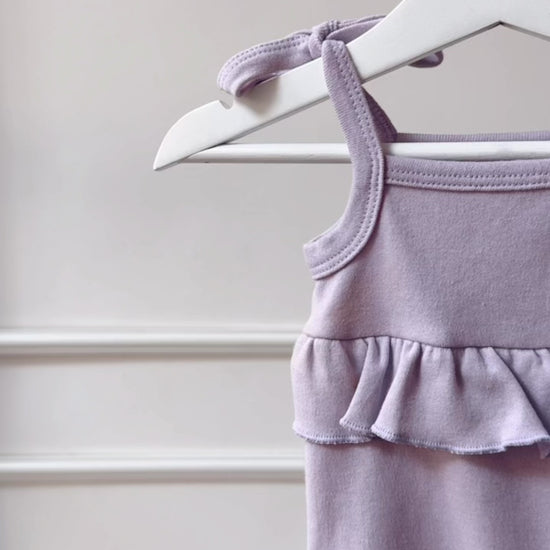 The Lilac Ruffle Baby Girl Bodysuit is the perfect choice for those looking for a comfortable, elegant, and charming look for their baby's everyday life. With delicate ruffles on the collar and sleeves, this bodysuit brings that special touch every mother loves to see on her baby.