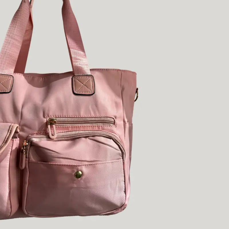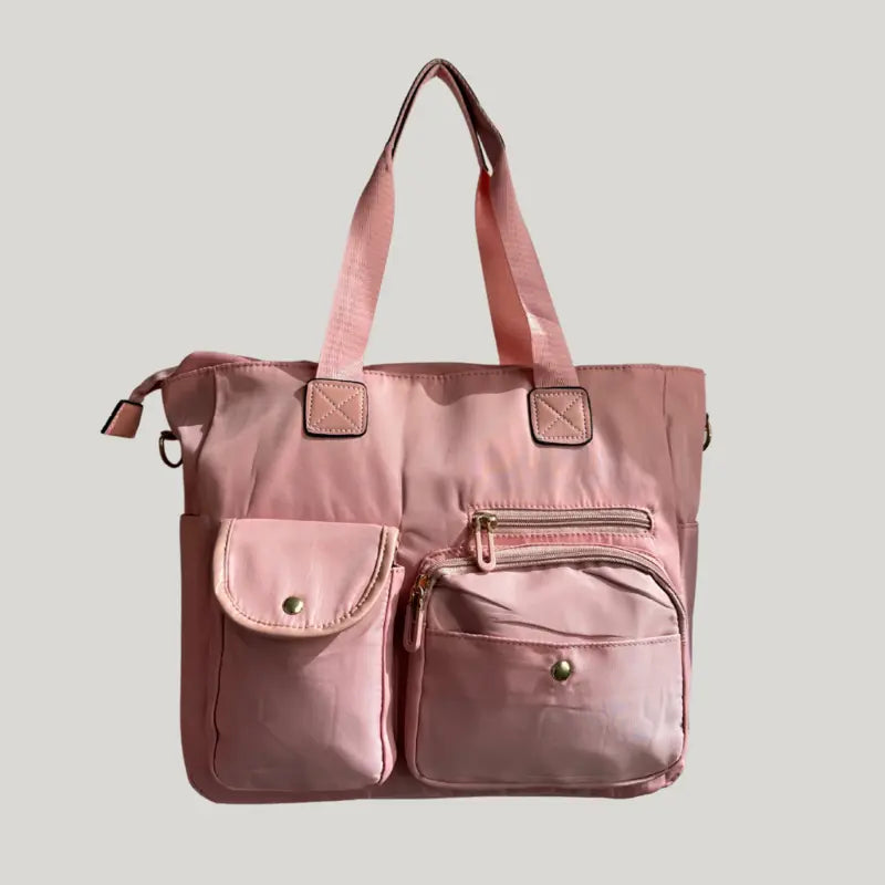The baby pink color conveys softness and care, making this bag an affectionate and practical item in a mother's daily life.