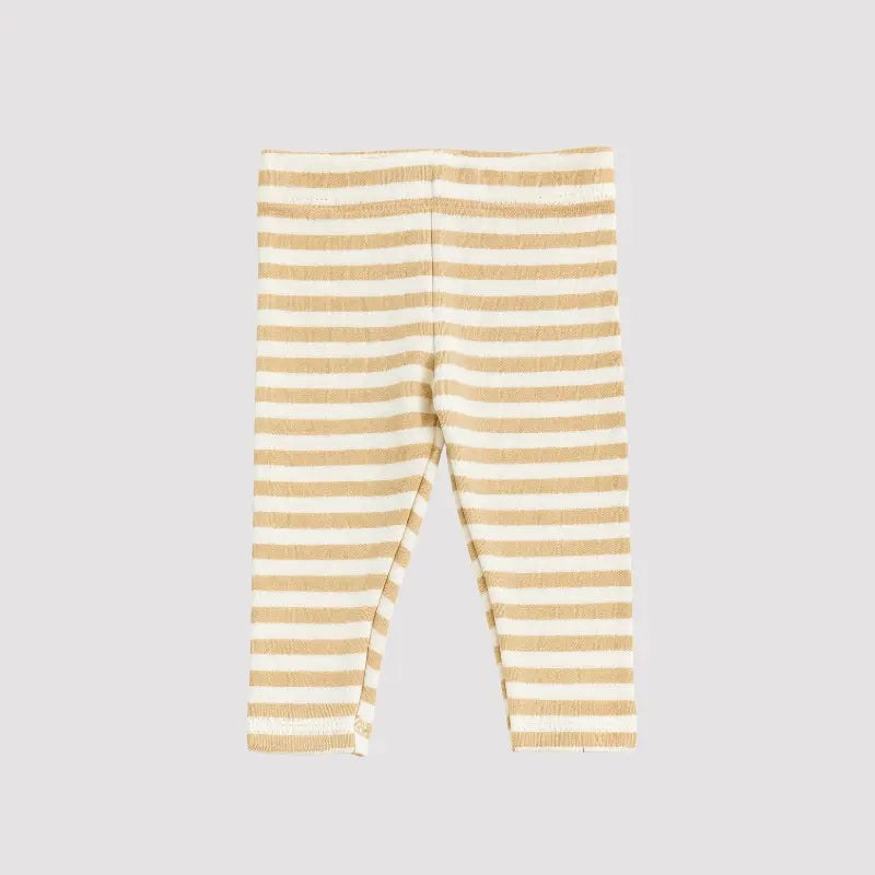calça bebê listrada, calça unissex bebê, legging bebê bege, calça listras bebê, roupa bebê confortável, enxoval neutro bebê, look moderno bebê