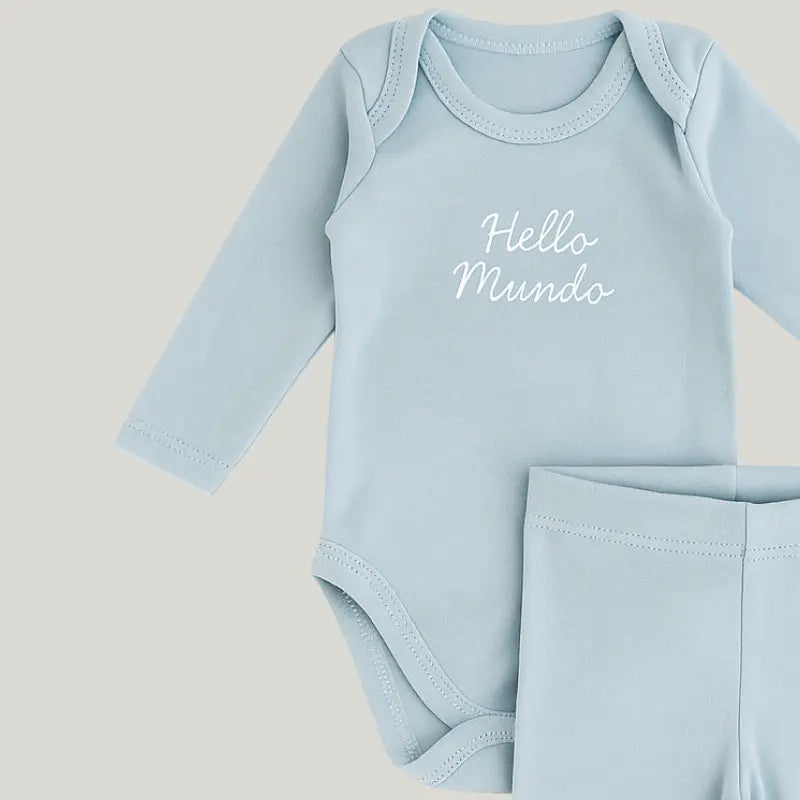 The Hello World Blue Organic Cotton Baby Set is ideal for dressing your baby's first moments with affection, softness, and environmental responsibility . Made from lightweight cotton, it's perfect for newborns' sensitive skin.