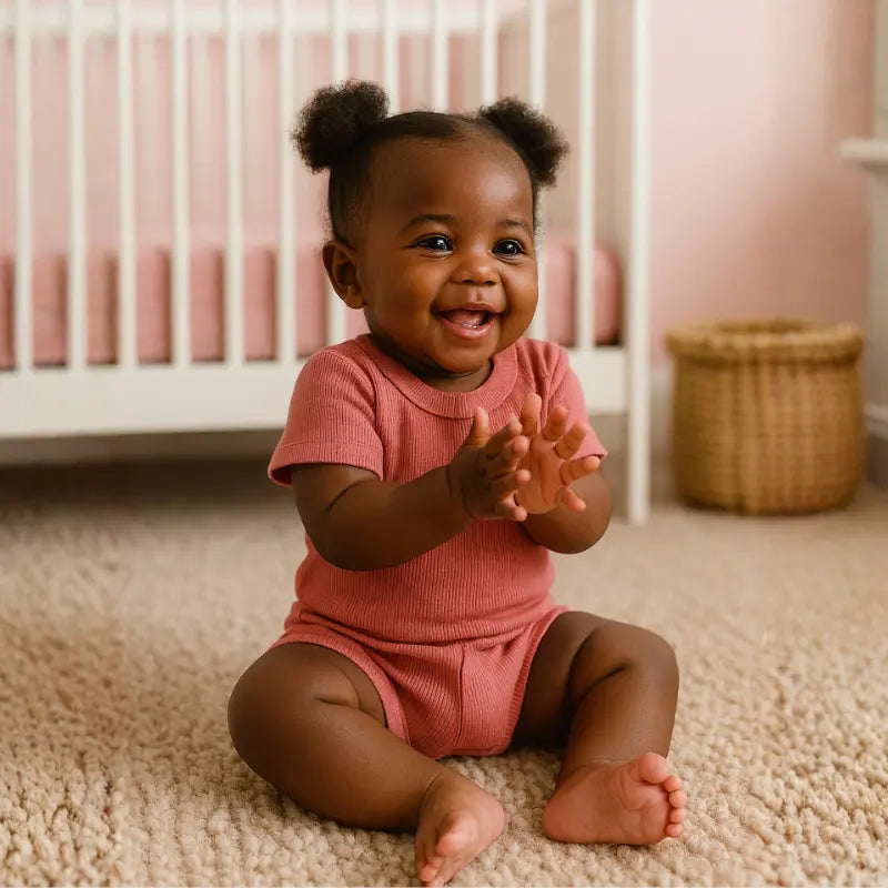 The Fresh Rose Ribbed Baby Girl Set is made from high-quality ribbed knit, ensuring comfort, breathability and freedom of movement for the baby.