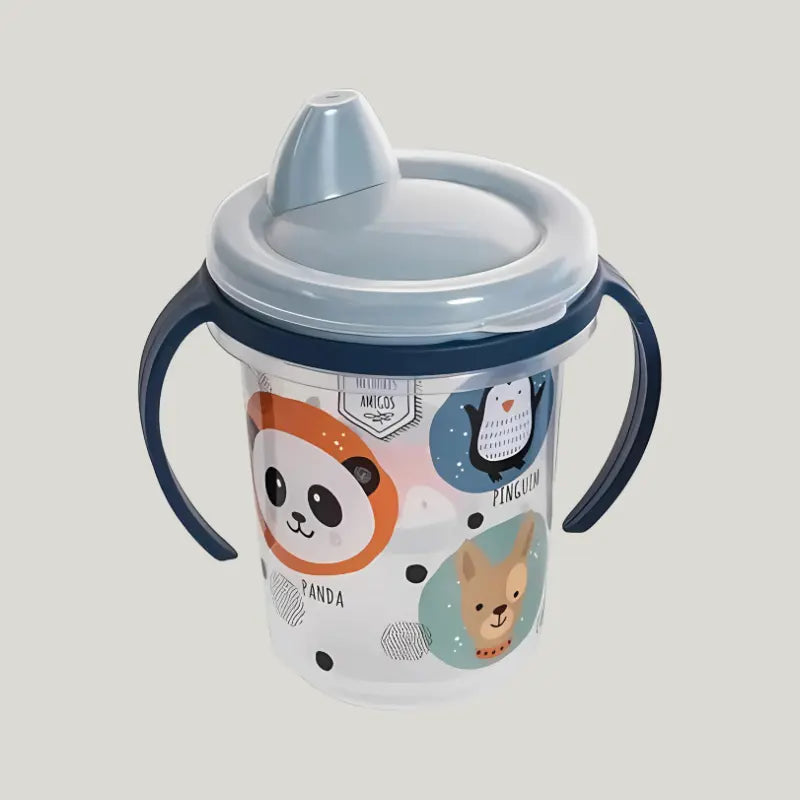 With protective overcap. Coordinated line: Complete line of products to meet your baby's hygiene, organization, and training needs. Blue composition with animal print. Made of polypropylene (PP). BPA-free.