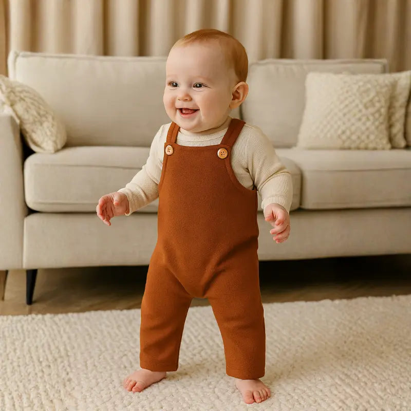 The Ocher Baby Sweatshirt Overalls are made from soft, lightweight sweatshirt fabric , providing comfort, practicality and freedom for your baby to move around comfortably.