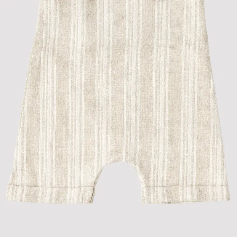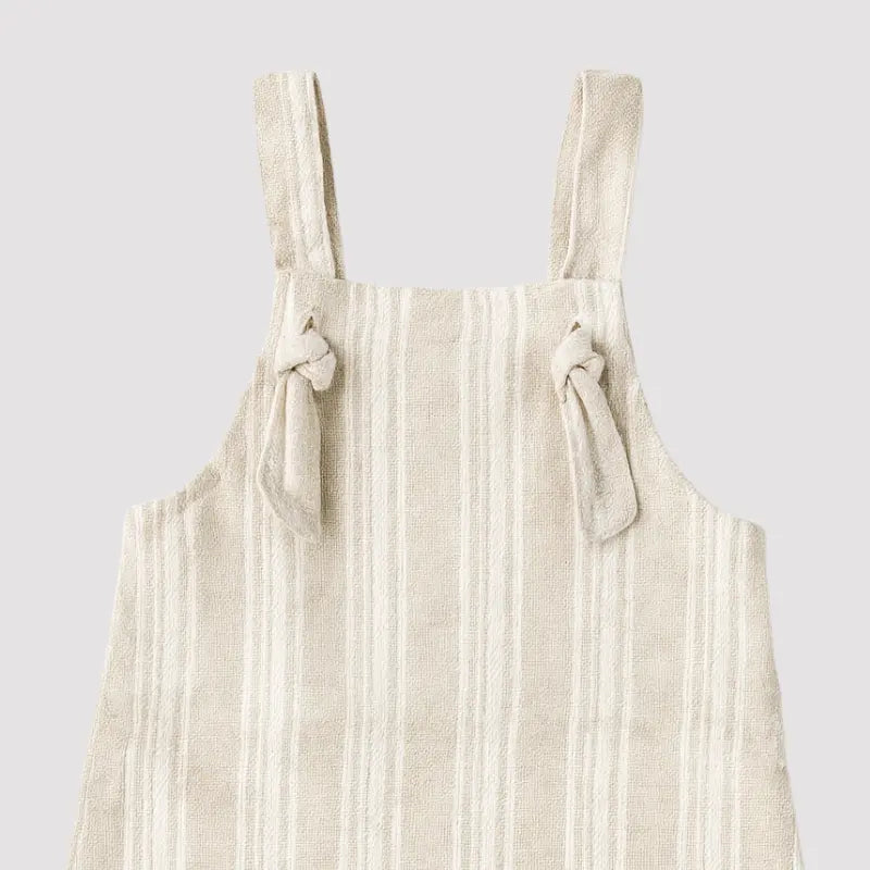 Unit price perA Jardineira Nó Bebê Linho Listras Bege é uma peça encantadora, leve e cheia de sofisticação natural.