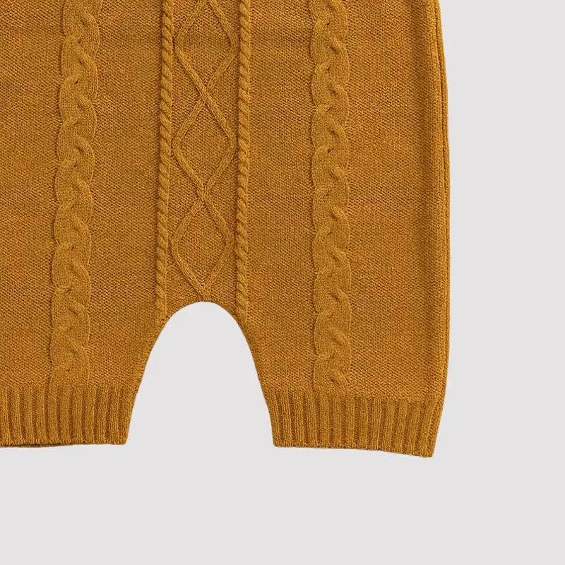 jardineira bebê tricot, jardineira mostarda bebê, jardineira confortável bebê, roupa moderna bebê, jardineira neutra bebê, enxoval sofisticado bebê