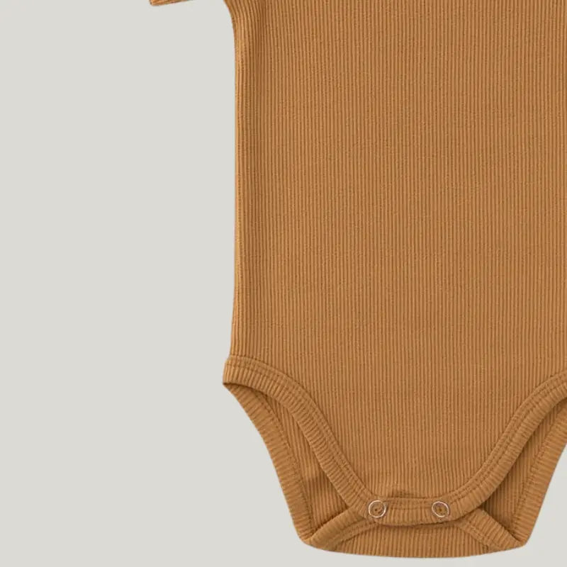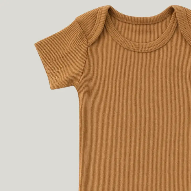 El body de bebé de algodón acanalado corto color café está confeccionado en punto acanalado suave, ligero y acogedor, lo que garantiza libertad de movimiento y bienestar para el bebé.