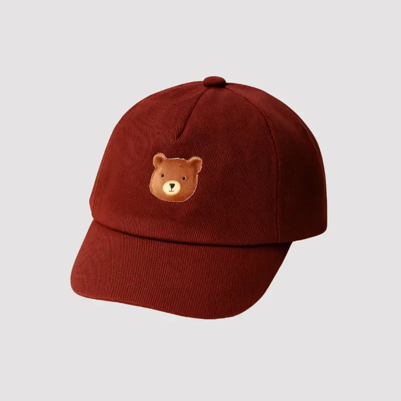 El gorro para bebé estilo oso color burdeos fue desarrollado en tela ligera y transpirable, ofreciendo comodidad durante su uso y protegiendo el rostro del bebé del sol.