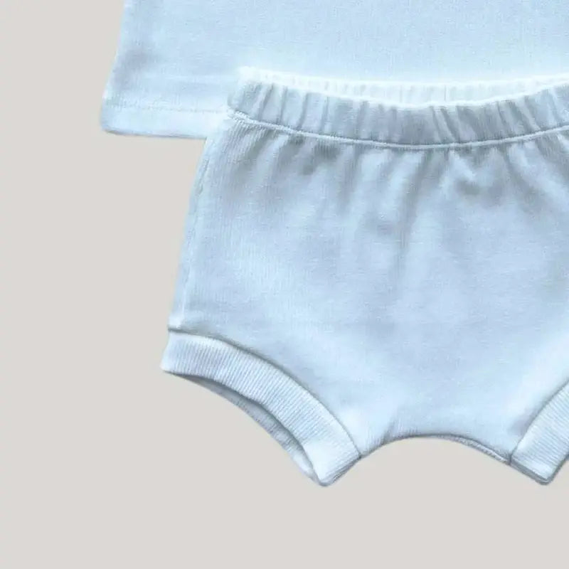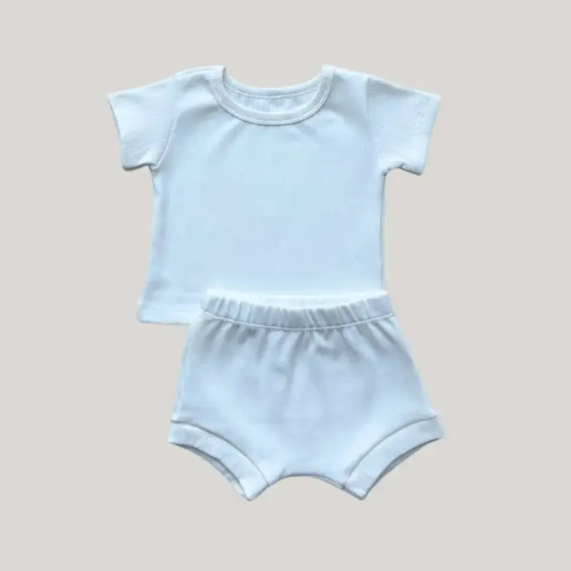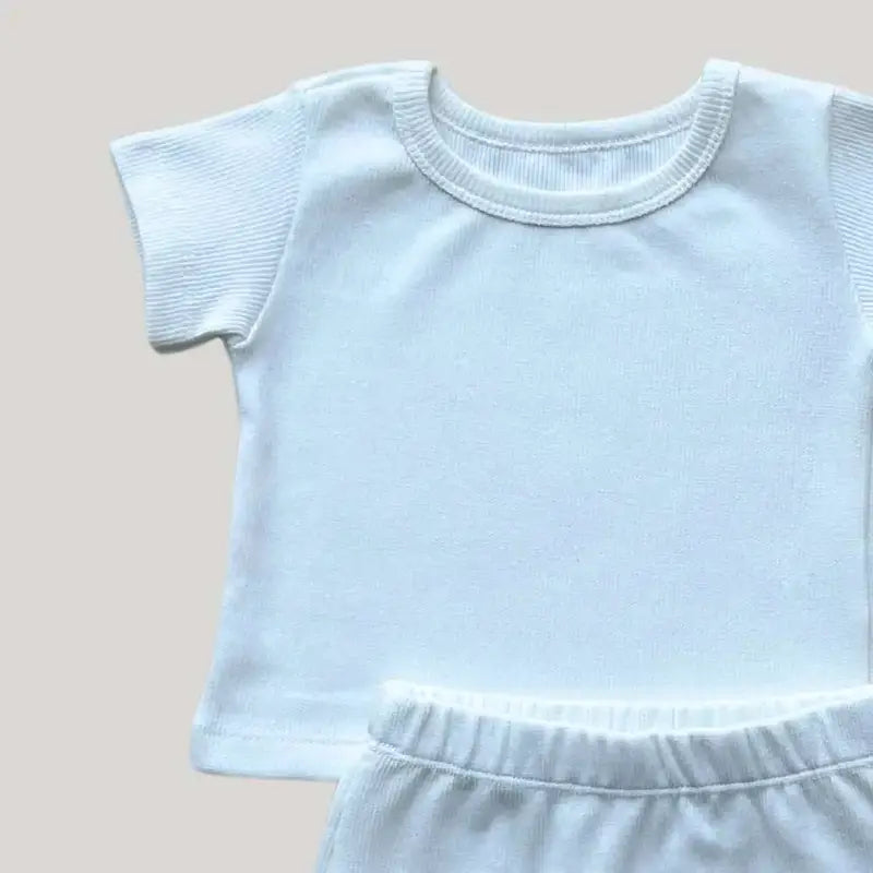 El conjunto Off-White Ribbed Baby Fresh es ideal para el clima cálido, ya que ofrece el equilibrio perfecto entre comodidad y estilo. Confeccionado en punto acanalado ligero y transpirable , es suave al tacto y permite total libertad de movimiento.