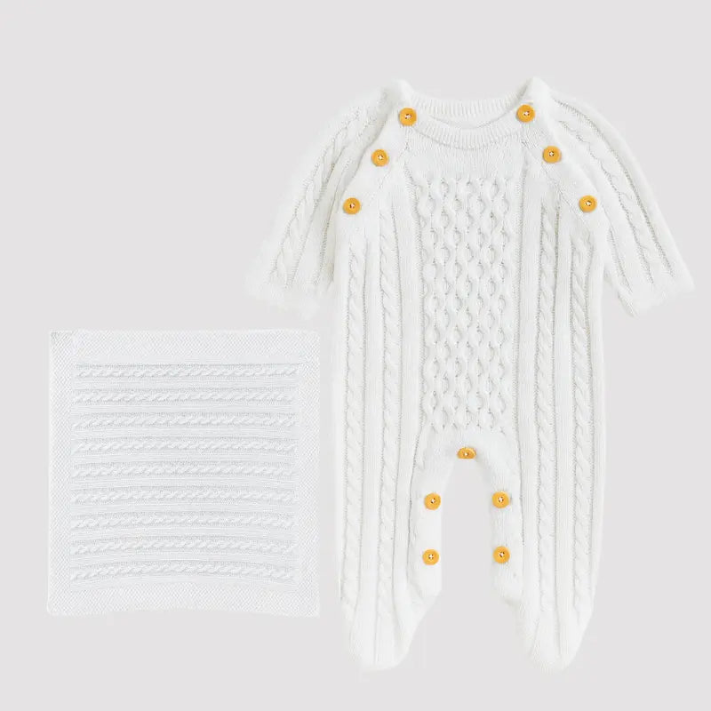 ✔ Kit completo – mono trenzado con botones + manta de punto