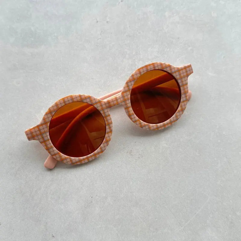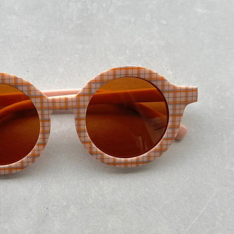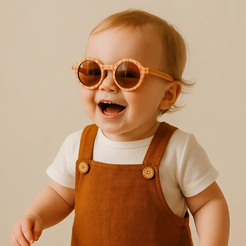 Las gafas de sol redondas retro para bebé con cuadros rosas y protección UV son el accesorio perfecto para completar looks de verano con seguridad y personalidad. Con una montura ligera y cómoda, ofrecen protección contra los rayos UVA y UVB, cuidando la salud visual de tu pequeño con estilo.
