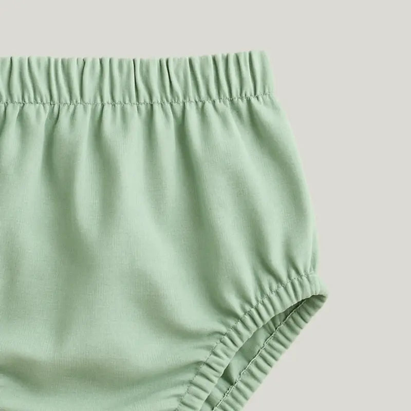 Cubrepañal de lino verde menta para bebé, ropa retro cómoda para bebé, pantalones cortos ligeros para bebés niños y niñas, cubrepañal vintage para completar el look, pieza de verano versátil para bebé.